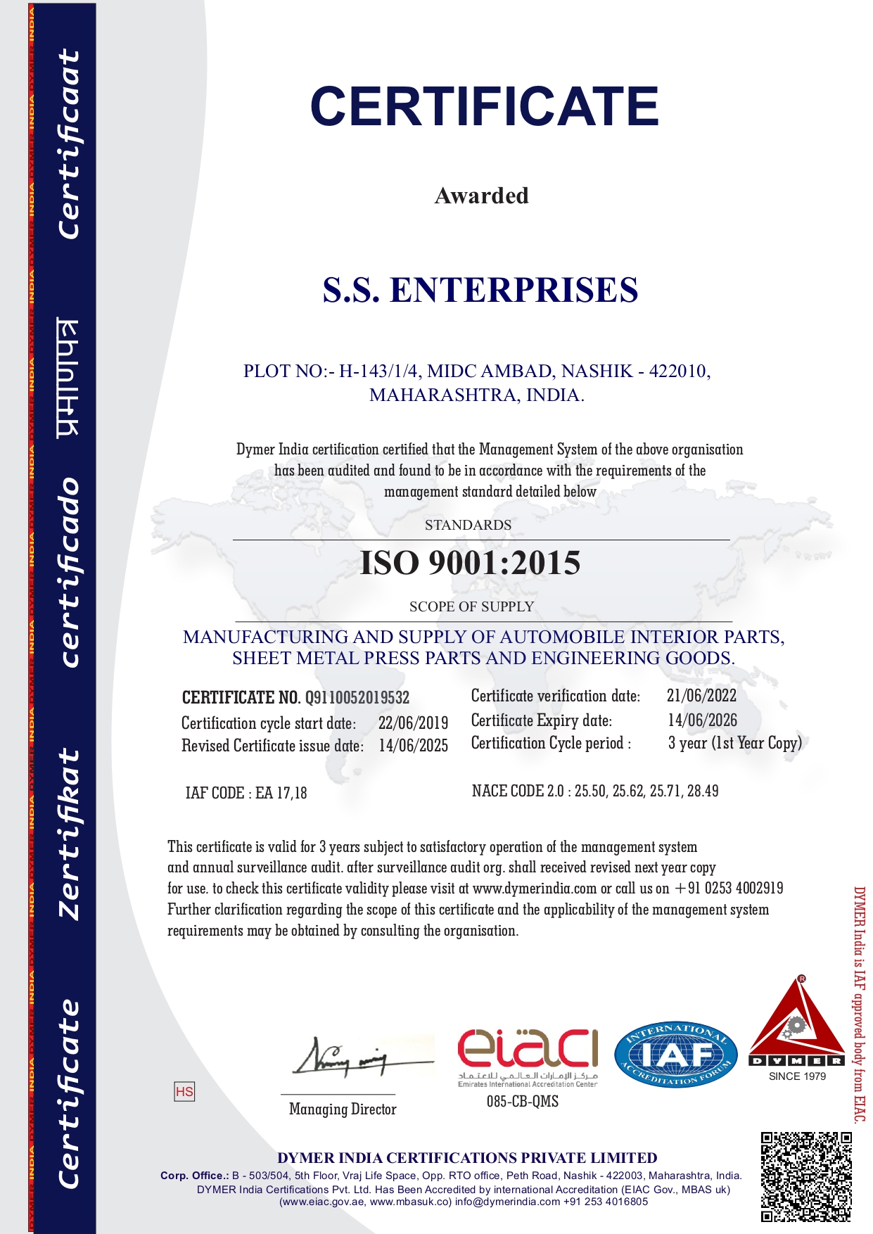 At S.S. Enterprises, our passion drives us to excel in every endeavour. With our state-of-the-art 10,000 sq ft manufacturing facility in MIDC Ambad Nashik, we are equipped to handle everything from Press Parts, Machined Parts, to Plastic Parts. Our expertise extends to Auto Interior Parts and Engineering Goods, and we offer design solutions for molds, press tools, jigs fixtures, and specialized tooling. Customer concepts are transformed into reality through our prototype development process, showcasing our commitment to precision and excellence.